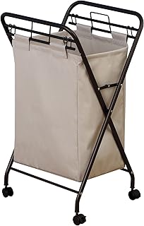 Household Essentials 7172 Rolling Laundry Hamper with丈夫なキャンバスバッグ|アンティークブロンズフレーム