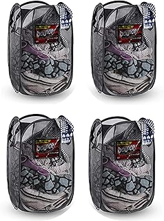 (4) - Foldable Pop-Up Mesh Hamper, Laundry Hamper with Reinforced Carry Handles Rectangle, Black (4)