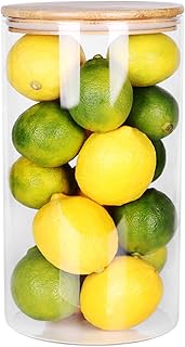 SAIOOL ガラスストレージジャー 1.2ガロン ストレージコンテナ 天然竹の蓋付き 砂糖やシリアルの大きなボックスなどの保管に