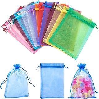 PandaHall オーガンジー 巾着袋 約100枚 ミックス 7x9cm ギフトバッグ ラッピング袋 ジュエリーポーチ 収納バッグ 小物入れに 結婚式・誕生日・ウェディング用 プレゼント袋 混合色