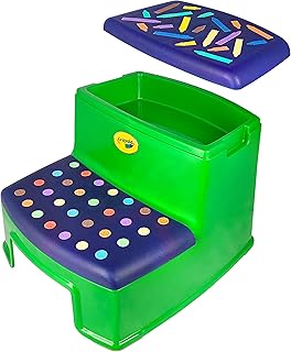 Crayola 10” inch Two Step Stool with Storage, Step Stool for Kids, Toddler Color Learning, Toddler Step Stool, Kitchen Helper Stool for Toddlers, Potty Training Step Stool, Step Stool 300 lb Capacity