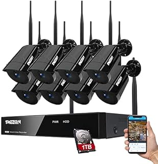 TMEZON バージョン ワイヤレス防犯カメラ 屋外 300万画素 3MP 8chレコーダー 増設可能 ワイヤレス防犯カメラ 8台セットIP66防水防塵 屋外対応 ワイヤレス監視カメラ システム wifi スマホ PC遠隔監視 動体検知 暗視機能 日本語システム&日本語取扱説明書 (8CHレコーダー+8台カメラ+1TB HDD)