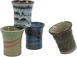 Ebros Gift 日本製 カラフル 抽象画 アート 天然 釉薬 磁器 5オンス ドリンク コーヒー ティーカップ 4個セット 日本製 アーティスティック 陶器 装飾 アジア フュージョン 装飾 陶器 ドリンクカップ