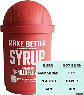 CULTURE MART カルチャーマート 【暮らしの工夫】 ゴミ箱 + 分別シール(透明) 35L DUSTBIN ごみ箱 ダストボックス ふた付き おしゃれ (レッド)