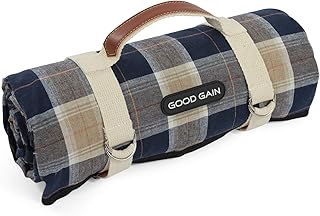 防水ピクニックブランケット 持ち運び用ストラップ付き ビーチマット 家族やアウトドアキャンプパーティーに (ブルーチェック)