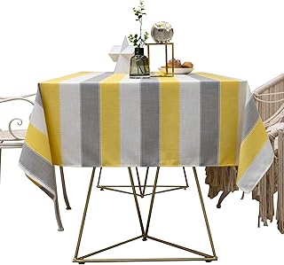 長方形のテーブルクロス黄色ストライプタッセルテーブルクロスステッチクッションテーブルクロスアートコットンとリネン小新鮮なテーブルクロス,イエロー,90x90cm(35x35inch)