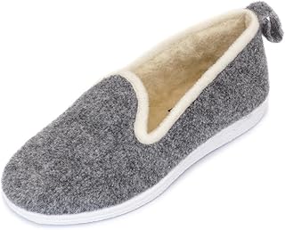 ULTRAIDEAS レディース 本革 スエードレザー モカシン スリッパ 快適な低反発素材 ハウスシューズ フェイクファー 裏地 滑り止め付き インドア/アウトドア用 ラバーソール