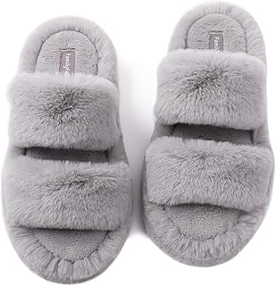 FamilyFairy レディース 2バンドフェイクファースリッパ