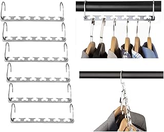 Joyoldelf 省スペース縦横両用ハンガー 6連収納ハンガー 収納力アップ クローゼット すべらないハンガー ステンレス(6本セット)