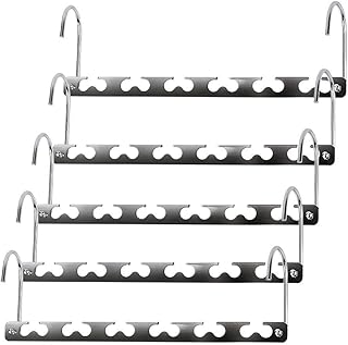 ハンガー 省スペース 多機能 5段着脱式 衣類収納 滑らない ハンガー 頑丈なスチール製 錆びにくい 5本組 コート スカード 洋服 綺麗に収納ハンガー 室内 家庭用 ブラック