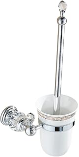 OWOFAN Toilet Brush Holder Wall Mounted Bathroom Shelf Toilet Brush Bowl Holder Solid Brass Crystal Deco Chrome Silver HK-44L 141[並行輸入]