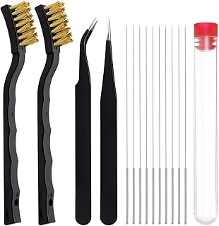 KITANIS 3D Printer Nozzle Cleaning Kit with Brush - 10 Pieces 0.4 mm Cleaning Needles, 2 Types Sophisticated Tweezers and 2 Pieces Cooper and Stainless Wire Cleaning Brushes