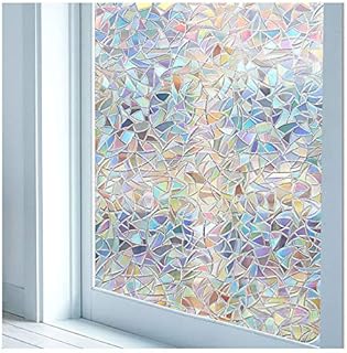 DOWELL ウィンドウフィルム プライバシー 3D 装飾ウィンドウフィルム ガラス用 静電気ウィンドウステッカー 取り外し可能なビニール ステンドグラス ウィンドウデカール レインボー効果 非粘着 紫外線防止 ウィンドウステッカー 35.4インチx157.8インチ